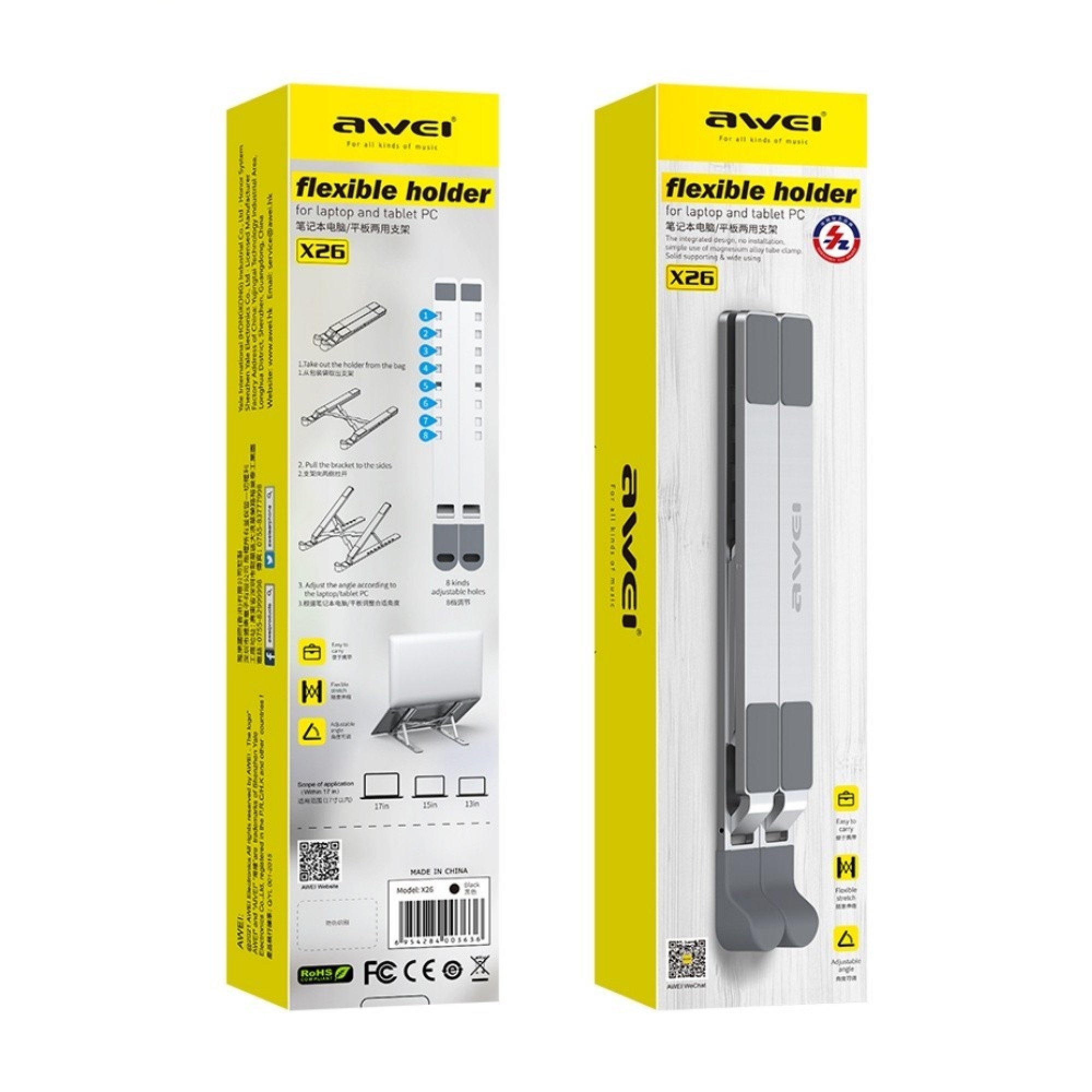 SULANKSTOMAS NEŠIOJAMO KOMPIUTERIO STOVAS AWEI X26 SIDABRINIS