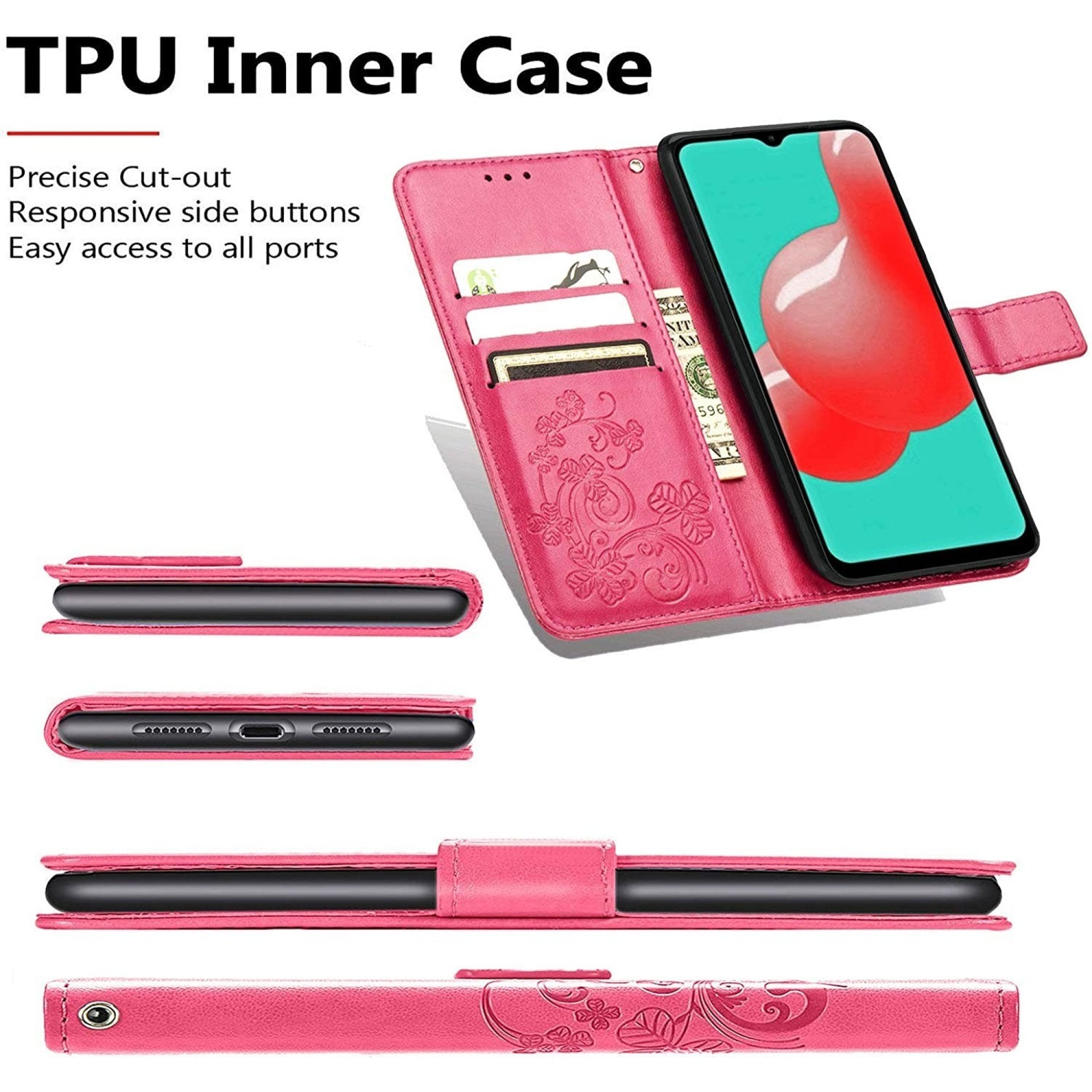 DĖKLAS FLOWER BOOK SAMSUNG A556 A55 5G ROŽINIS-RAUDONAS