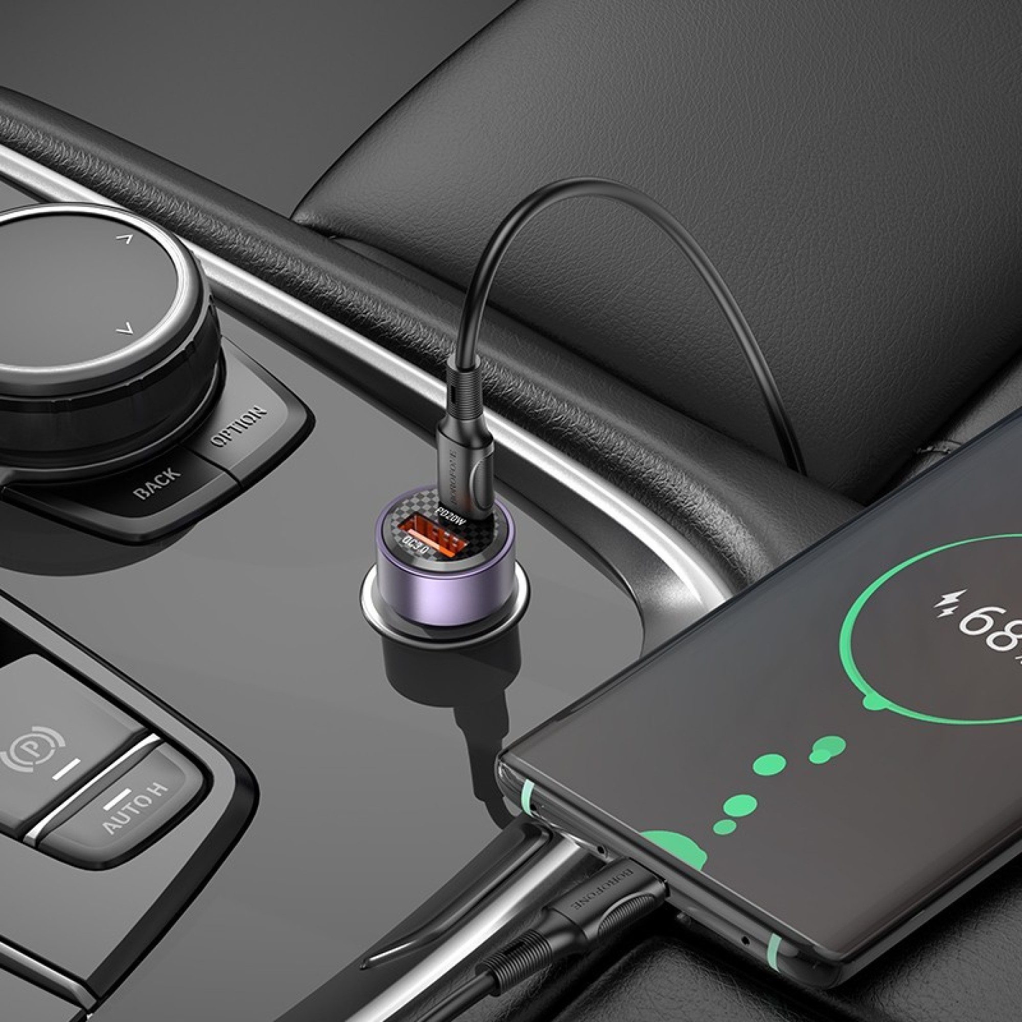 AUTOMOBILINIS ĮKROVIKLIS BOROFONE BZ20 PD20W+QC3.0 38W JUODAS