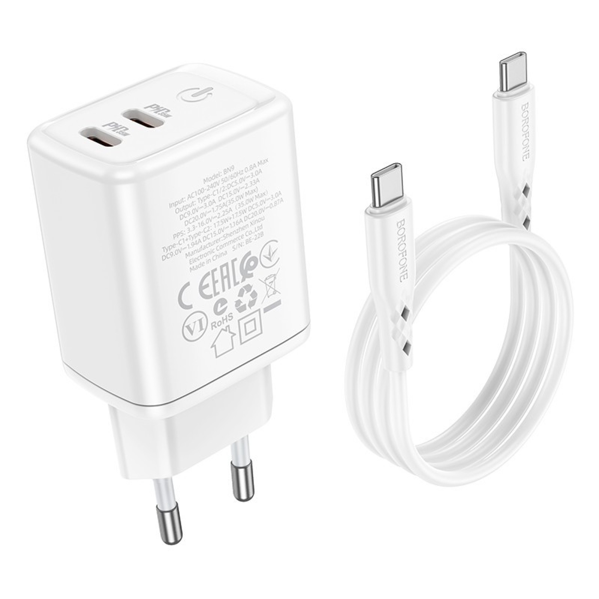 ĮKROVIKLIS BOROFONE BN9 35W 2XUSB-C + USB-C TO USB-C CABLE 1.0M BALTAS