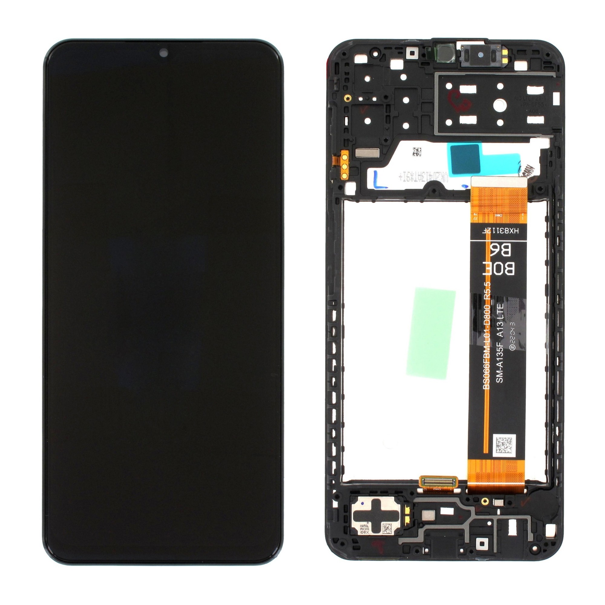 EKRANAS SAMSUNG A135 A13 4G SU LIETIMUI JAUTRIU STIKLIUKU IR RĖMELIU ORIGINALUS BLACK (SERVICE PACK)